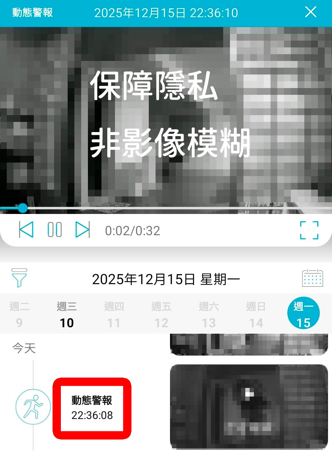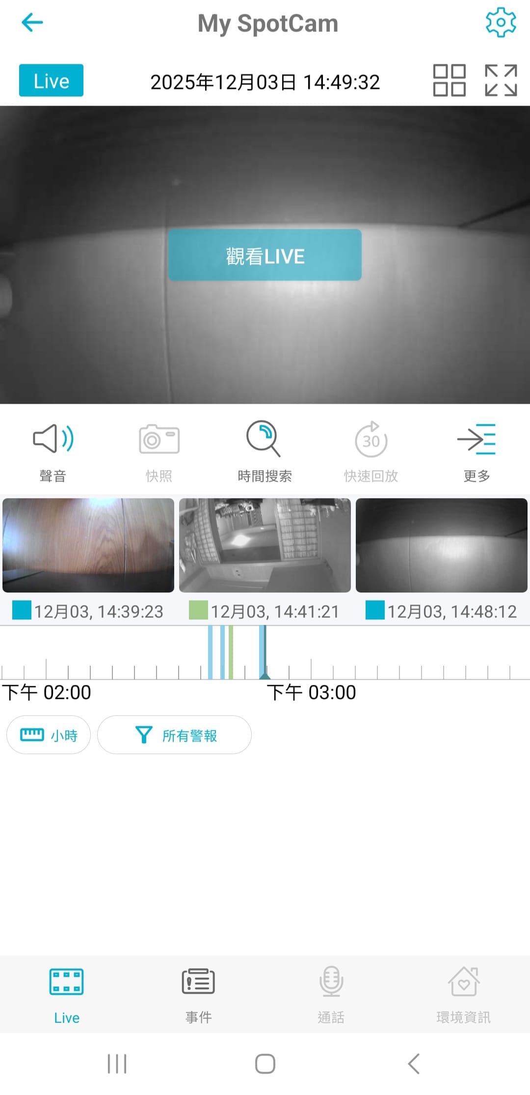 平板或手機接收即時動態或聲音警報,隨時掌握狀況。我覺得這功能很不錯,畢竟大家不會隨時監看攝影畫面,如果有動靜的時候會即時通報,可以即時察覺異狀,對安全來說很加分!