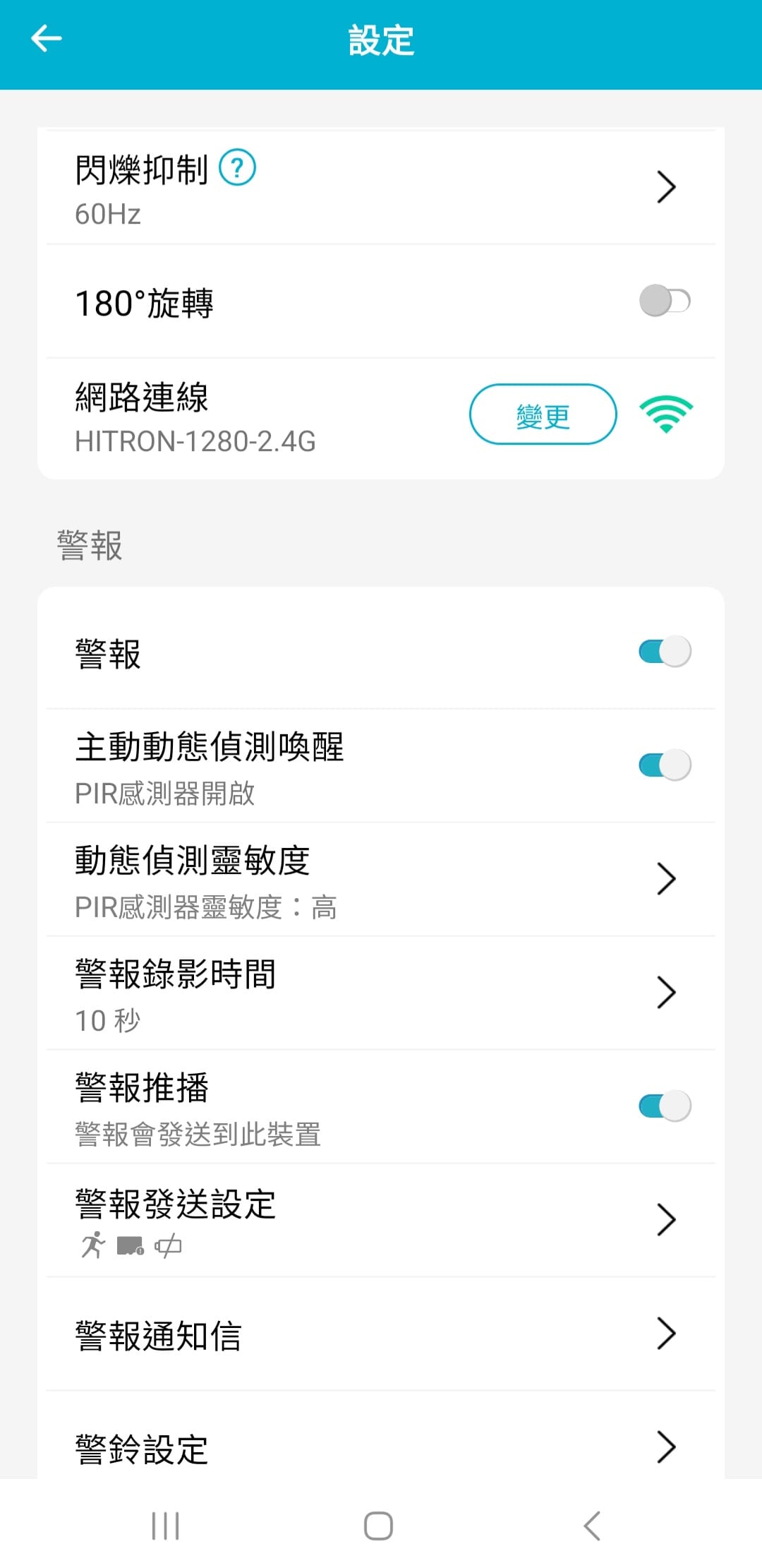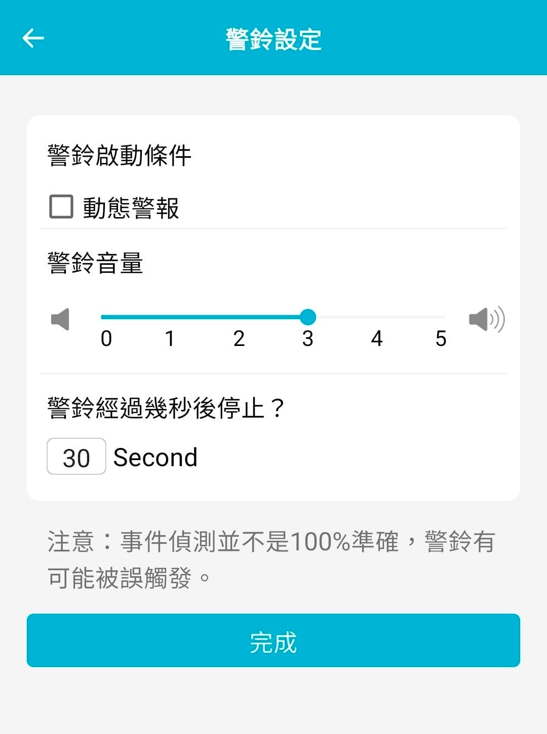 聲音警報的部分,低電量跟動態警報時可以設定警鈴發出聲響,如果想要有警示作用的話可以設定這個部分。