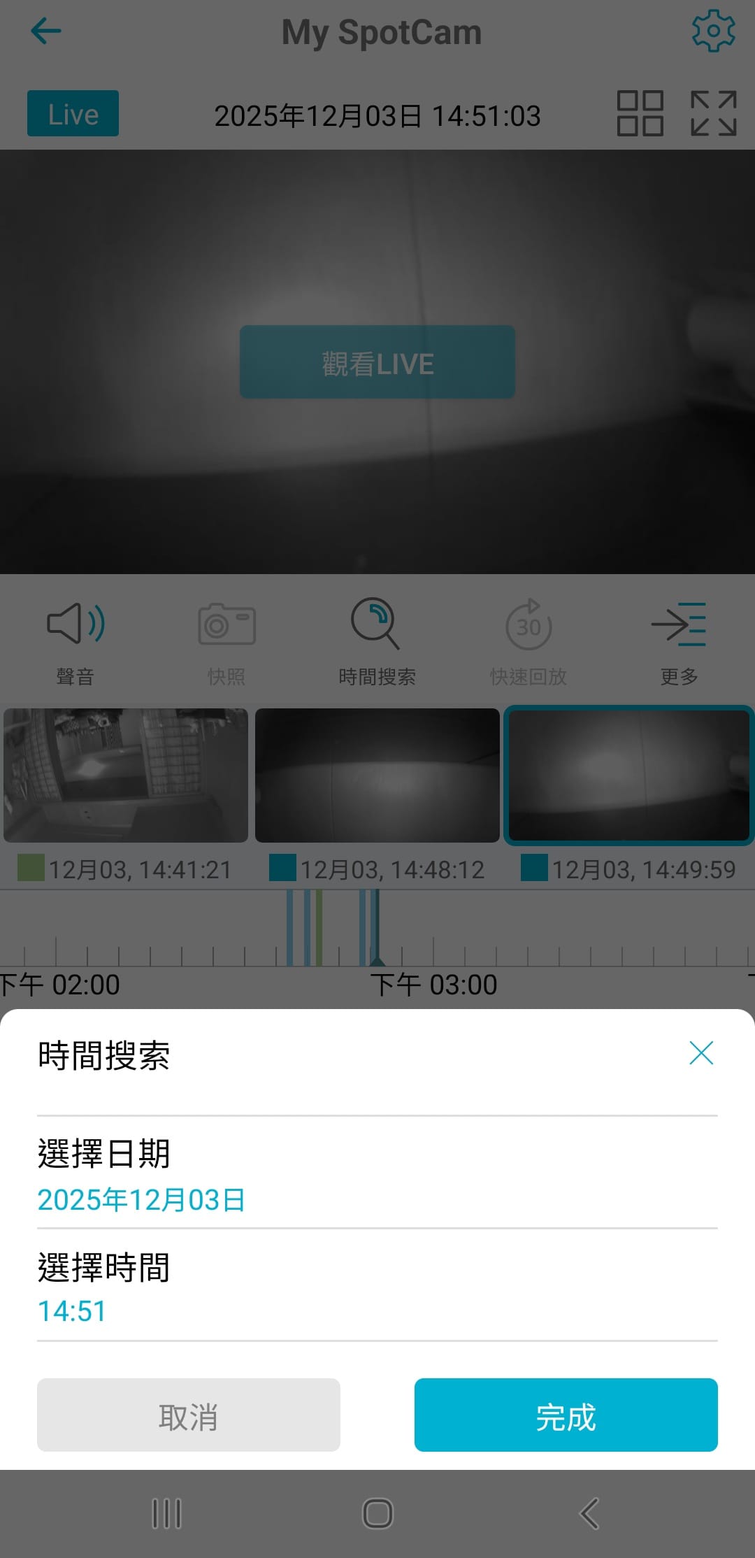 如果有想要找的特地時間,也可以用搜尋功能,輸入日期與時間,可以更快速的找到影像。