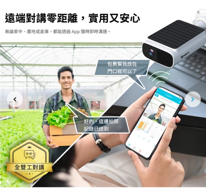 雙向語音不是「多一個功能」而已, 而是讓你在不在家都能「即時處理現場狀況」 ,不論是收送包裹、家人、寵物、訪客、陌生人...,都能透過雙向語音溝通!