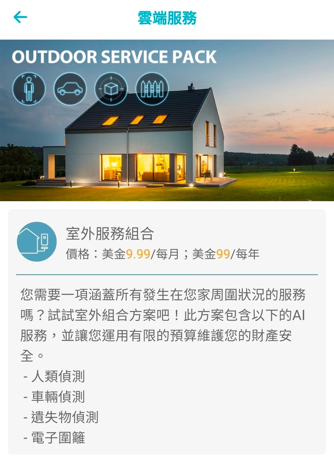 不是買國外模組來套用,由台灣在地團隊開發,更多我們本地生活會用到的辨識功能,像是:人類/寵物/車輛偵測、遺失物偵測、電子圍籬、嬰兒哭聲/口鼻遮蓋偵測、寶寶時光屋、甚至還有寵物偵測等...