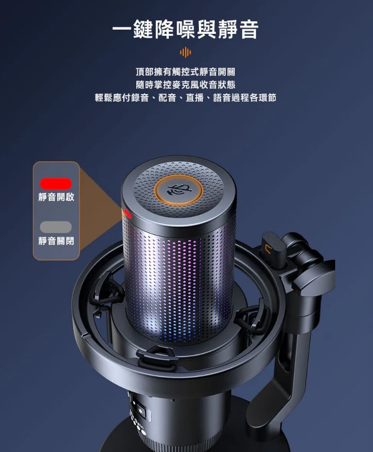 尷尬,這款麥克風設計的一鍵降噪、靜音功能,我覺得在線上會議的時候真的超