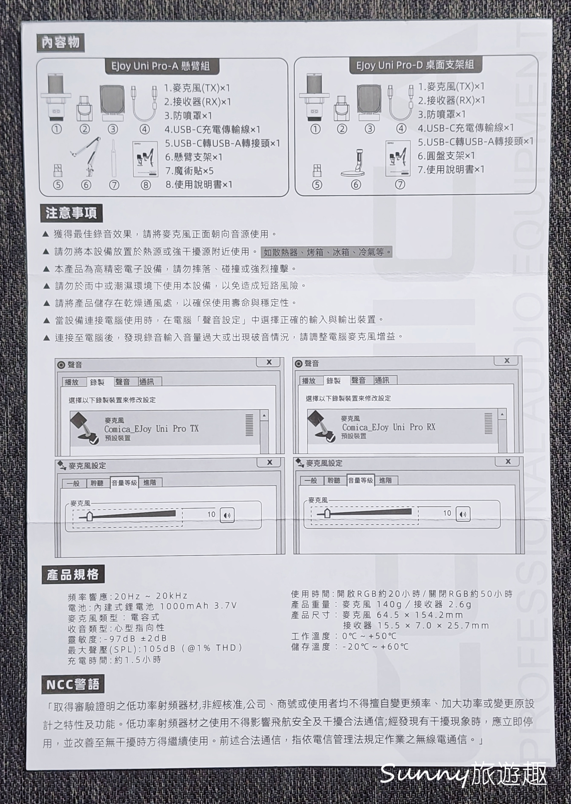 單看數據可能不太了解,Sunny研究了一下,這個規格大概屬於哪個等級區間,大家可以參考,以這款麥克風來說算是中階的等級,一般使用情況下算是滿實用。